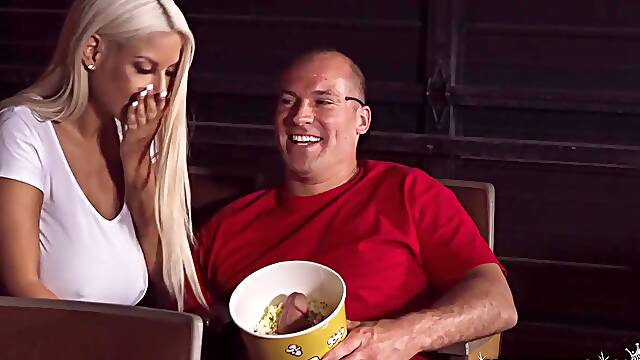 Seductive Blonde Mommy And Her Sons Best Friend Are Fucking In The Cinema And Enjoying It