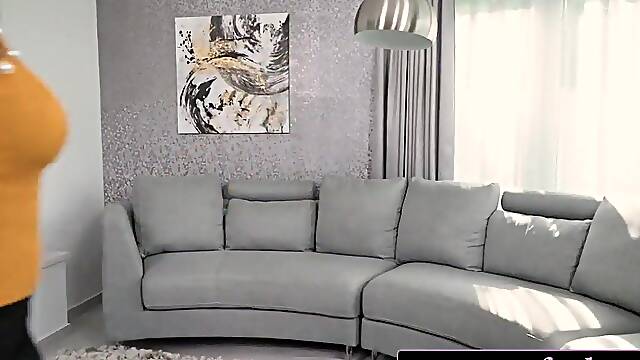 Young lad gets to gag and fuck his curious mom after a nice couch teaser