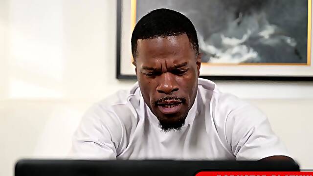 Blue Eyes Cougar MILF Doctor get Horny while watch clients Big black Penis and seduce him to Interracial Fuck