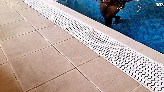 truly risky and hasty boinking in a public sauna, squirting in the mouth of Dada Deville